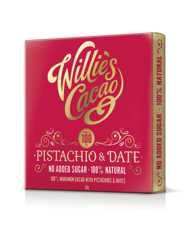 100% Willie’s Cacao + Pistácie a datle (bez přidaného cukru) 50g