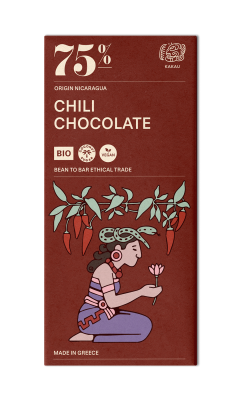 SLOŽENÍ: Kakaové boby, kakaové máslo, cukr z kokosových květů, chilli. Vše v BIO kvalitě. Ekologické zemědělství. Obsah kakaa minimálně 75%.
