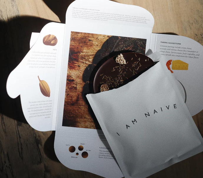 V malém městečku na východní straně Litvy vyrábí Chocolate Naive své unikátní čokolády ,,od bobů po tabulku". Každé brzké ráno čokoládový mistr pečlivě praží čerstvé kakaové boby, jejichž lahodná vůně jemně probouzí obyvatele města. Stejně jako před sto lety se v Naive kakaové boby pomalu konšují, aby se uvolnila jejich mimořádná paleta chutí s tóny ovoce, ořechů a květin. Tyto ručně vyrobené tyčinky jsou uloženy na později, aby vyzrály a pak se vytvářejí různorodé řady příchutí s přírodními superpotravinami a kořením. V Chocolate Naive, jednom z pouhých 200 výrobců tohoto typu na celém světě, začíná celý výrobní cyklus již sušeným kakaovým bobem...