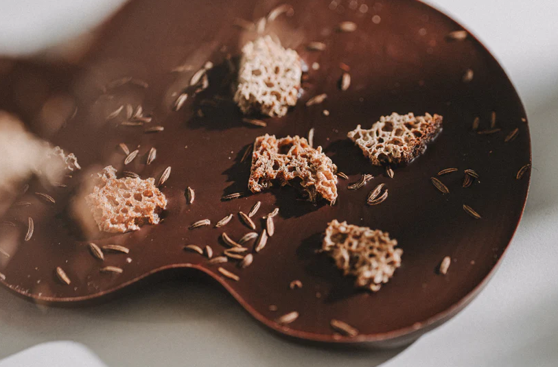 Tato krémová, darkmilk čokoláda s máslem kombinuje chutě voňavého černého žitného litevského chleba a kmínu. Je perfektní ke kávě, ale skvěle se hodí i ke smetanovému sýru, camembertu, avokádu a čerstvé zelenině. Základní litevská potravina, černý žitný chléb, se proměnil v luxusní čokoládu!