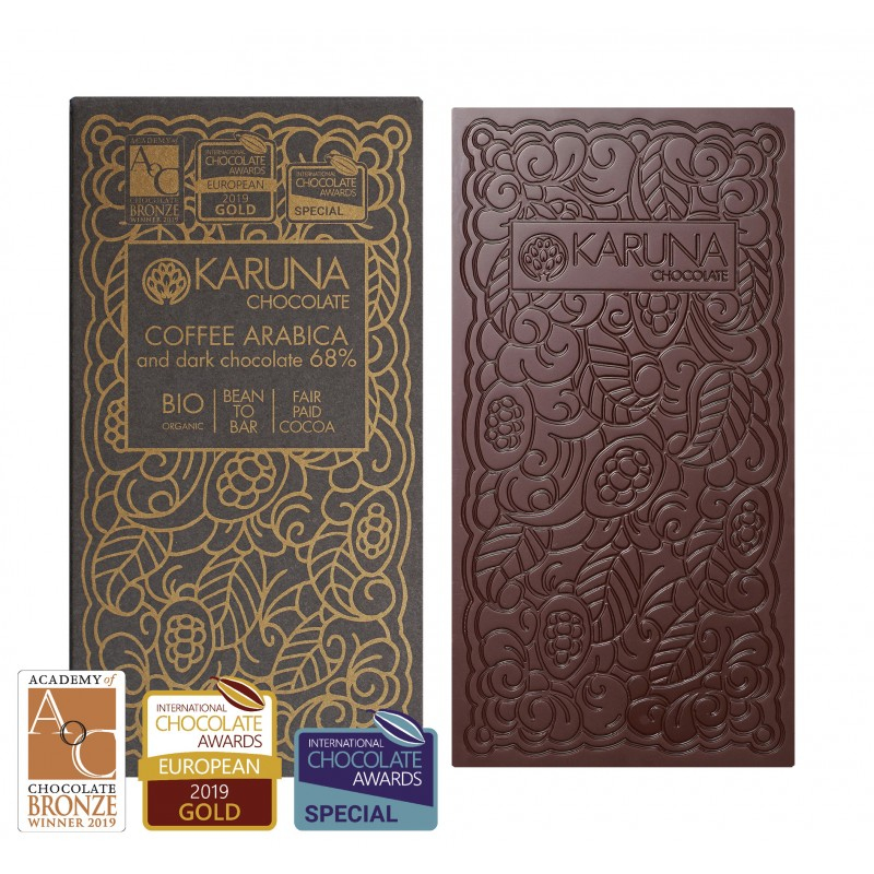 68% hořká zlatem oceněná BIO kávová čokoláda pro milovníky kávy a kakaa! Zobrazit více