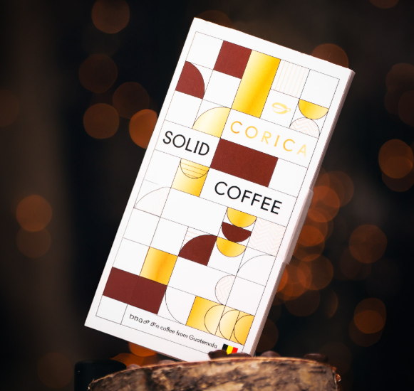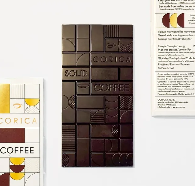 Tento belgický unikát je technicky 80% "čokoláda" - tedy kávoláda aka Solid coffee/pevná káva od Corica!.. protože místo kakaových bobů byly použity ty kávové a to nejen ledajaké, ale výhradně prémiová výběrová a organická bio arabica z Guatemaly od Corica coffee roasters z Belgie!