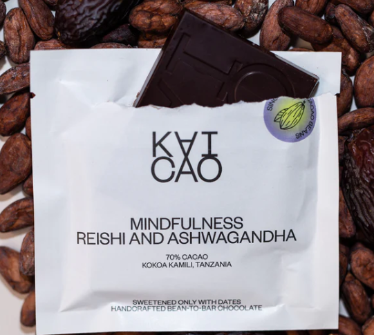 Denní podpora jasnosti i uklidnění mysli a těla s reishi a ashwagandhou ve funkční čokoládce KAICAO bez cukru (slazeno pouze datlemi). Kakao KOKOA KAMILI, TANZANIA. Zobrazit více