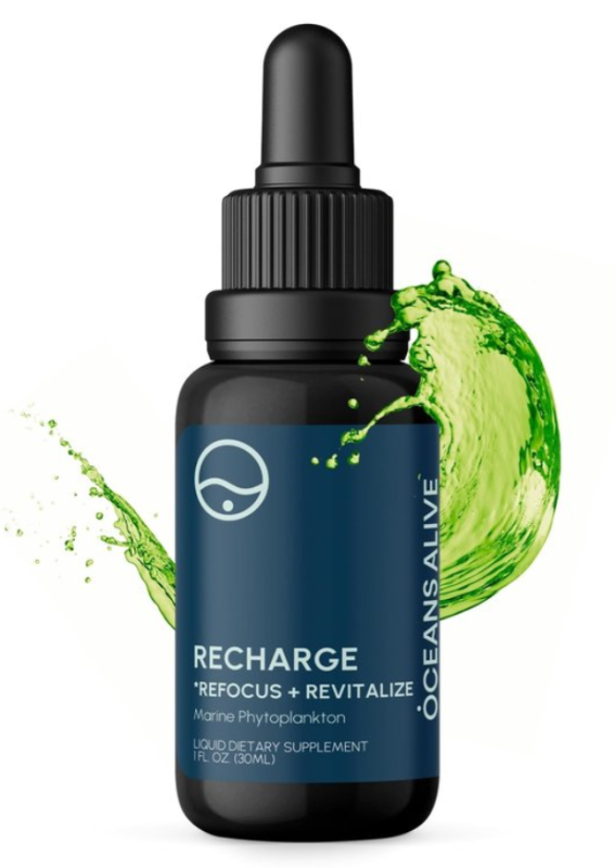 Oceans Alive® Recharge je prémiová směs dvou (ve fotobioreaktoru pěstovaných) speciálně kultivovaných mořských kmenů fytoplanktonu, díky čemuž jde o zcela čistý produkt bez kontaminantů. Hustota živin těchto mikroorganismů nabízí ohromnou škálu vitamínů, minerálů, esenciálních mastných kyselin a aminokyselin.