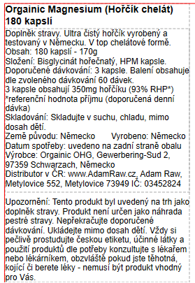Orgainic Magnesium (Hořčík chelát) 180 kapslí