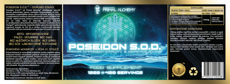 Poseidon S.O.D.™ - Tetraselmis chuii TetraSOD® je přírodní složka a není určena k diagnostice, léčbě, vyléčení ani prevenci jakékoli nemoci.