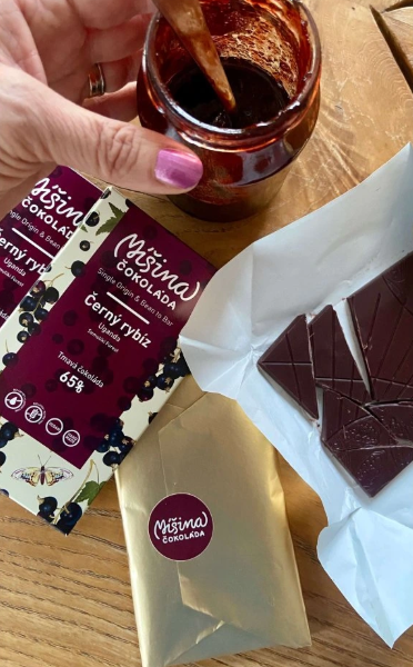Michaela D. - ,,Celý život mám ráda čokoládu. Kamkoli jedu, kupuju čokolády a čokoládové tyčinky a zkouším nové chutě. Tato moje láska mě dovedla až k výrobě vlastní čokolády. Ne takové, kdy si koupíte od velkého výrobce kakaovou hmotu, tu rozpustíte a nalejete do forem. Ale takové, kdy si najdete ty nejlepší kakaové boby na světě, pečlivě je ručně protřídíte, opražíte (různé boby vyžadují různou teplotu a dobu pražení), nadrtíte, odslupkujete a pak několik dní melete v kamenném mlýnu (melanžéru). Tak získáte svoji vlastní kakaovou hmotu. Po odležení (staření), kdy ještě dobíhají započaté chuťové procesy, kakaovou hmotu ztemperujete (zahřejete, ochladíte a znovu zahřejete). Je to taková alchymie, kdy každý teplotní stupeň hraje roli. Pak už jen nalejete do forem a po ztuhnutí vyklepnete a ručně zabalíte. Dobře ztemperovaná čokoláda se krásně leskne a při odlomení hlasitě křupne.. Vše probíhá u jednoho výrobce, a proto se takové čokoládě ve světě říká BEAN TO BAR neboli hezky česky OD BOBU PO TABULKU. Je úžasné, jak můžete během tohoto procesu ovlivnit chuť čokolády. Chci vám co nejvíce přiblížit chuť a aroma kakaových bobů z konkrétní země, proto boby nemíchám a všechny čokolády jsou single origin. Čokoláda z bobů z Vietnamu chutná úplně jinak než čokoláda z bobů z Tanzanie nebo třeba ze Šalamounových ostrovů, i když obsahuje stejné procento kakaových bobů. V čokoládách nenajdete žádný odtučněný kakaový prášek, mléčný tuk nebo lecitin, ale pouze nealkalizované výběrové kakaové boby, třtinový cukr a kakaové máslo. V mléčné čokoládě je navíc ještě plnotučné mléko. Výroba jedné tabulky trvá i týden, ale výsledek stojí za to!´´