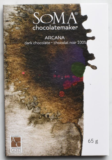 Soma je kanadský výrobce čokolády z bean-to-bar. Tato tabulka je vyrobena ze směsi luxusního kakaa z Venezuely (Porcelana), Ekvádoru (Costa Esmeraldas), Haiti (PISA) a Peru (Ucayali).
